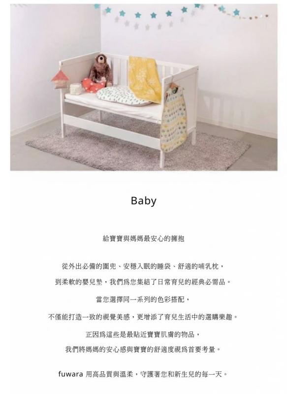 美感與實用兼具貼心的包覆設計加上溫柔配色,寶寶夜晚的安心感來自細節。不僅溫暖舒適,也成為育兒生活中最療癒的存在。