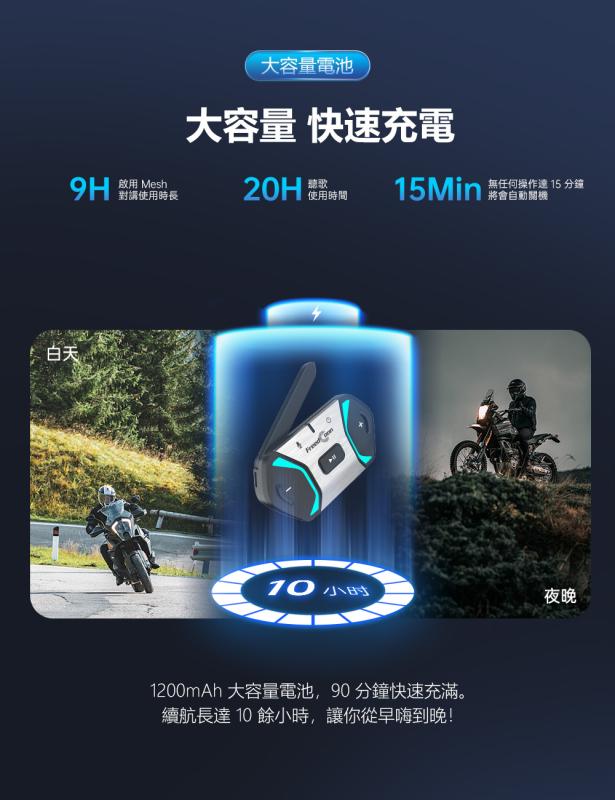 • 跨品牌相容性:可連接手機、GPS,並與其他品牌藍牙對講裝置配對