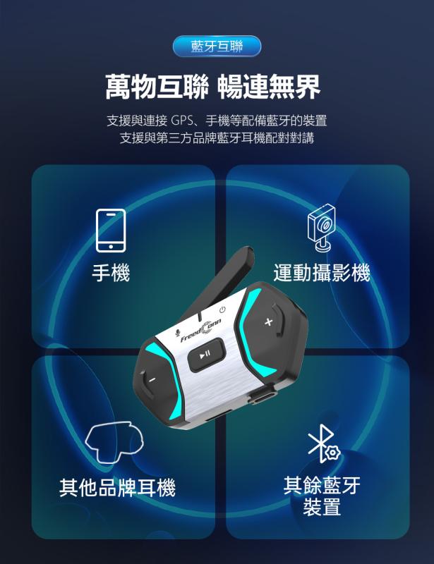 • 跨品牌相容性:可連接手機、GPS,並與其他品牌藍牙對講裝置配對