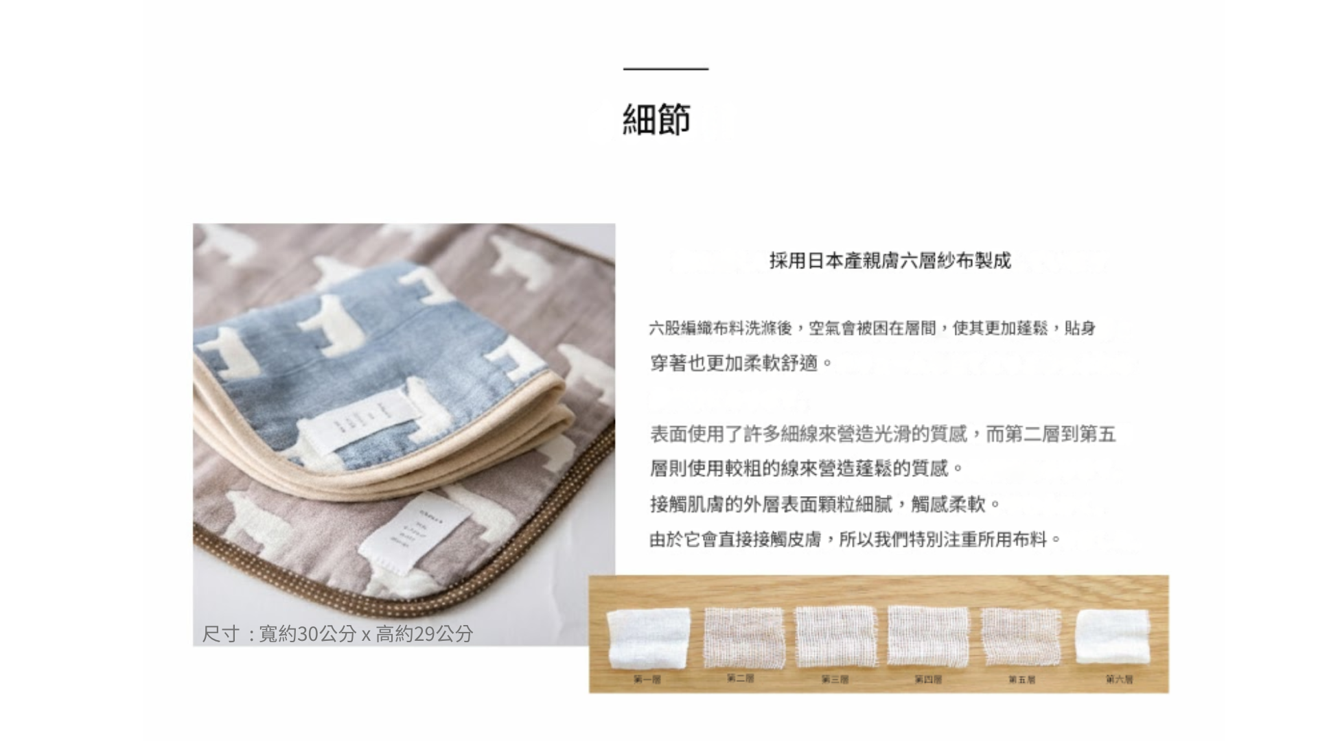 來自日本fuwara的六重紗手帕,帶來極致的柔軟觸感,讓每一次的使用都彷彿沐浴在輕柔的雲朵中。