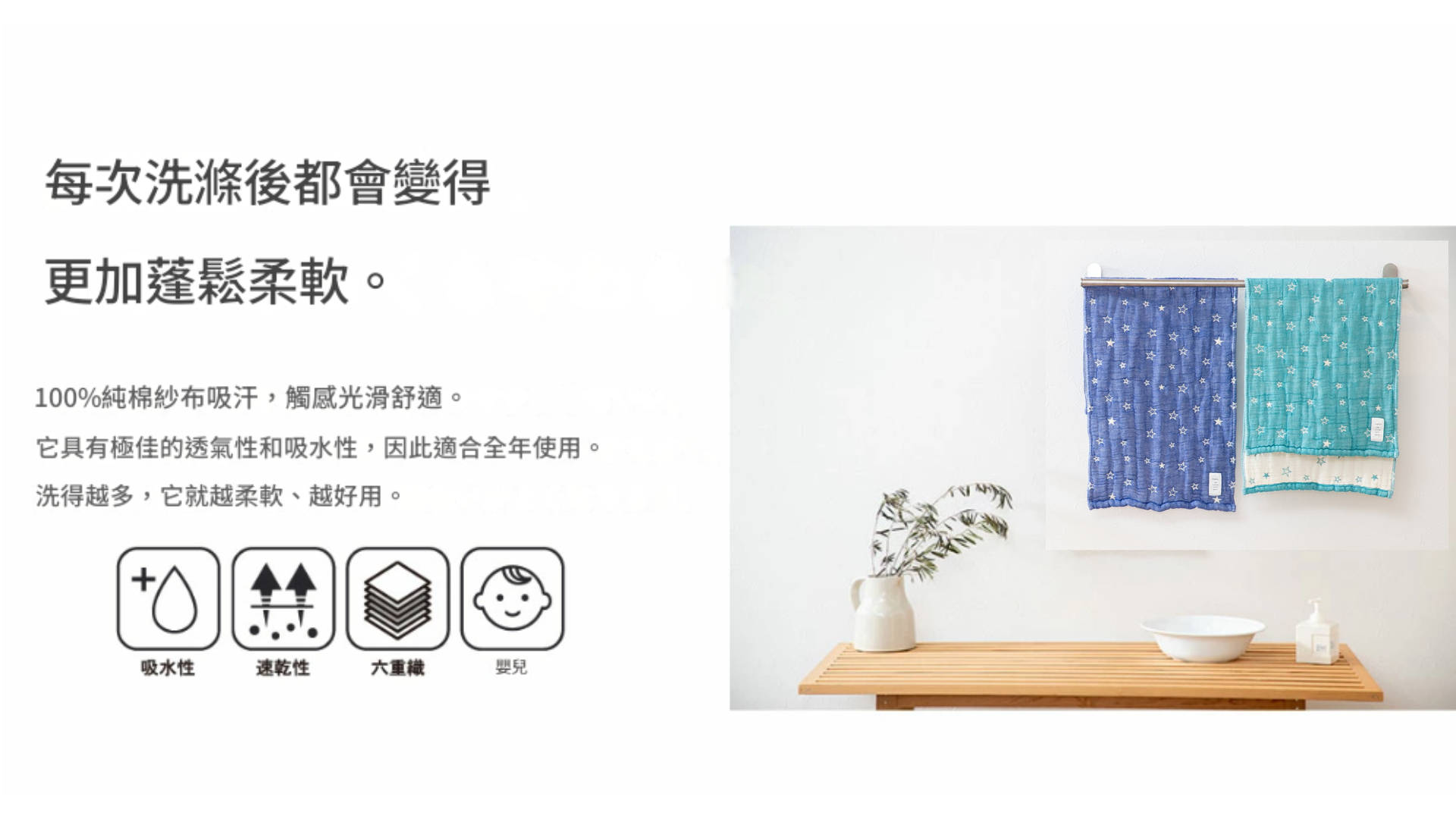 它採用六層純棉紗布的精緻交織技術,確保了極高的吸水力與透氣性,讓您每次使用後,都能感受到乾爽與愉悅。