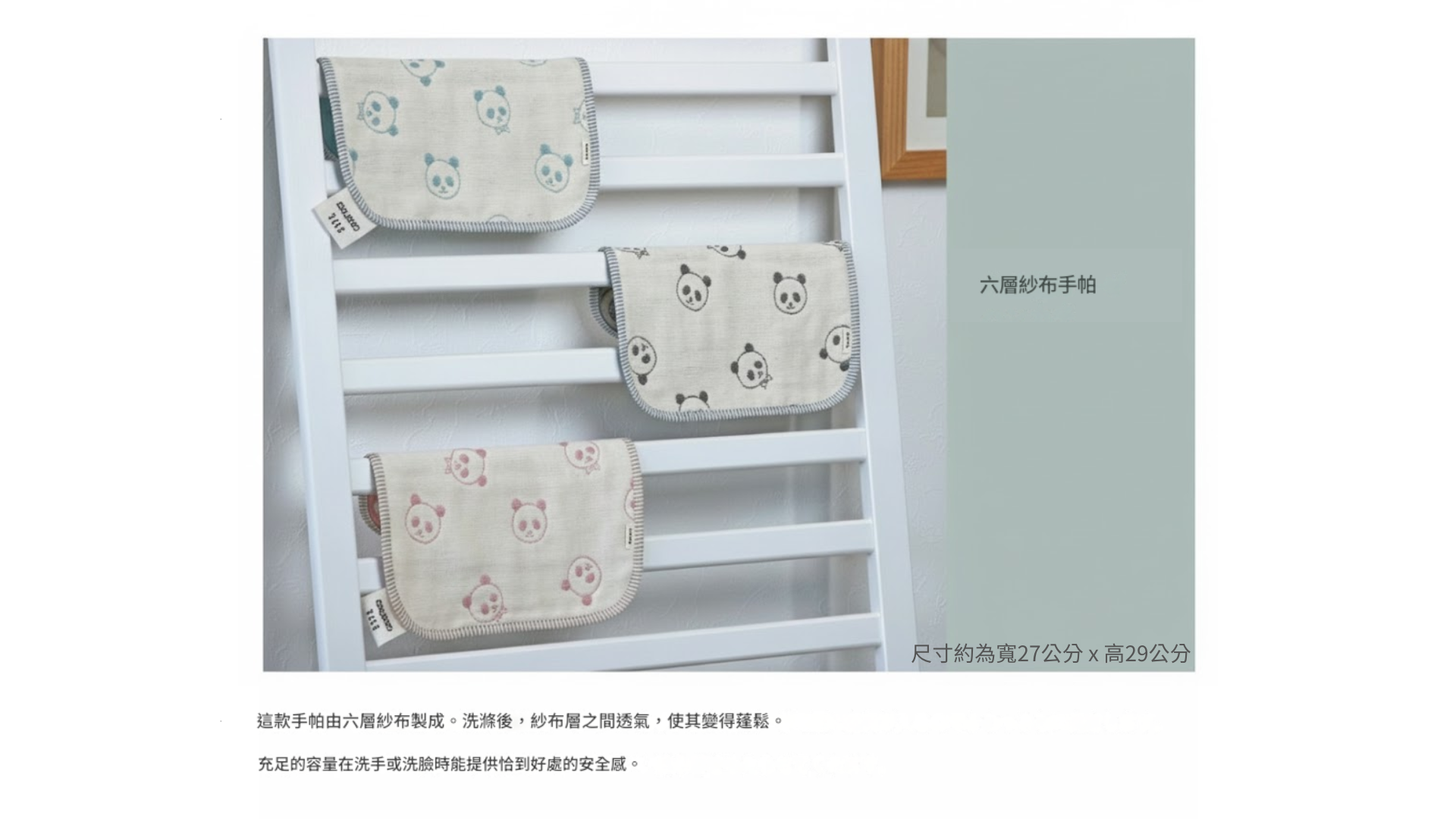 這款貓熊造型的手帕以純淨的棉紗精心編織而成,厚實的六層設計不僅增強了其吸濕性,還能迅速乾燥,讓您不再擔心潮濕的手帕帶來的不適感。