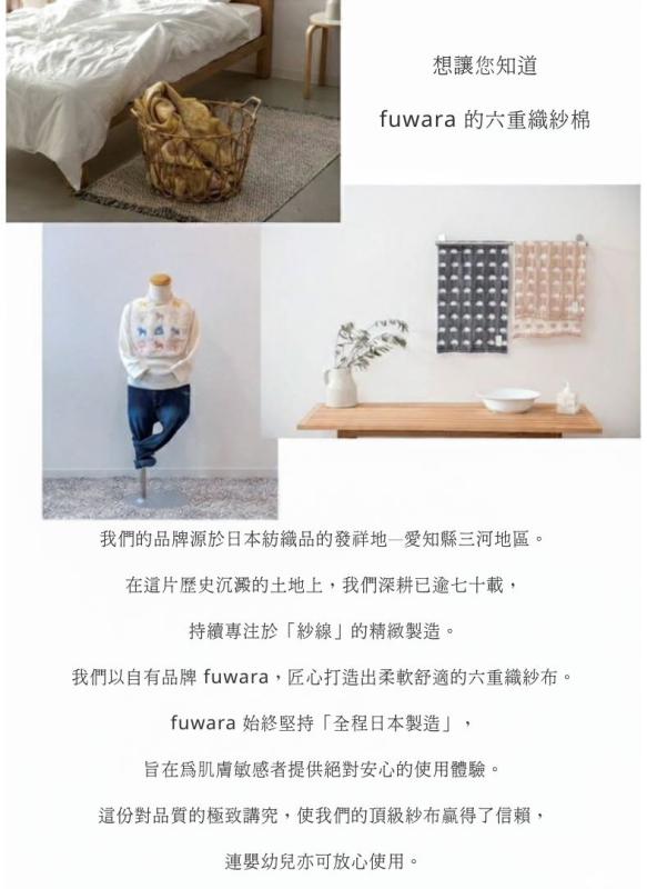 fuwara 的六重紗布由當地專業職人精心製作,從設計、織造到縫製,全程在自家工廠完成。