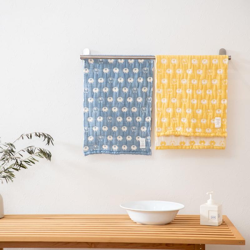 使用 100% 純棉六層紗布,輕盈蓬鬆、吸水力強。