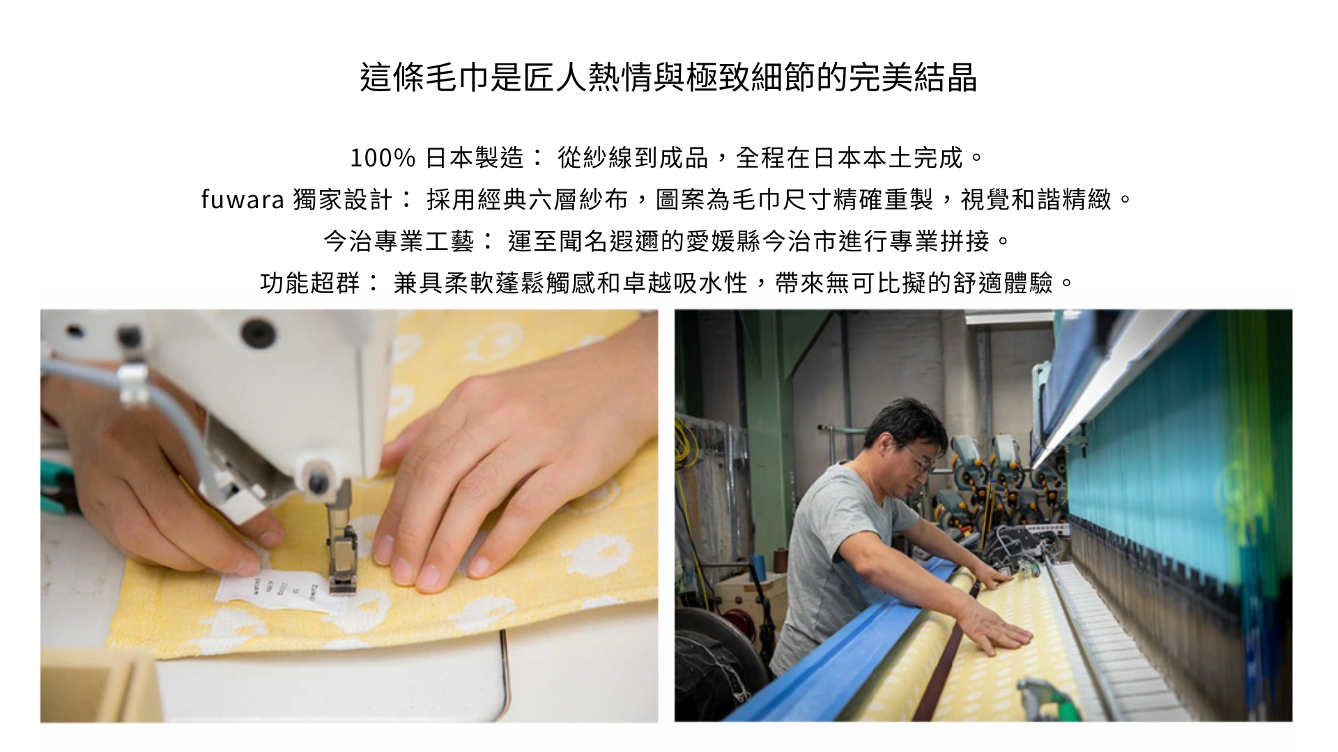 這款毛巾的每一處細節都透露著用心,從日本精緻工藝到對環保材質的堅持,為追求品味生活的您,提供了絕佳的選擇。選擇fuwara六重紗毛巾,讓日常的每一次清潔,都是一次愉悅的享受,體驗生活的柔軟與溫暖。