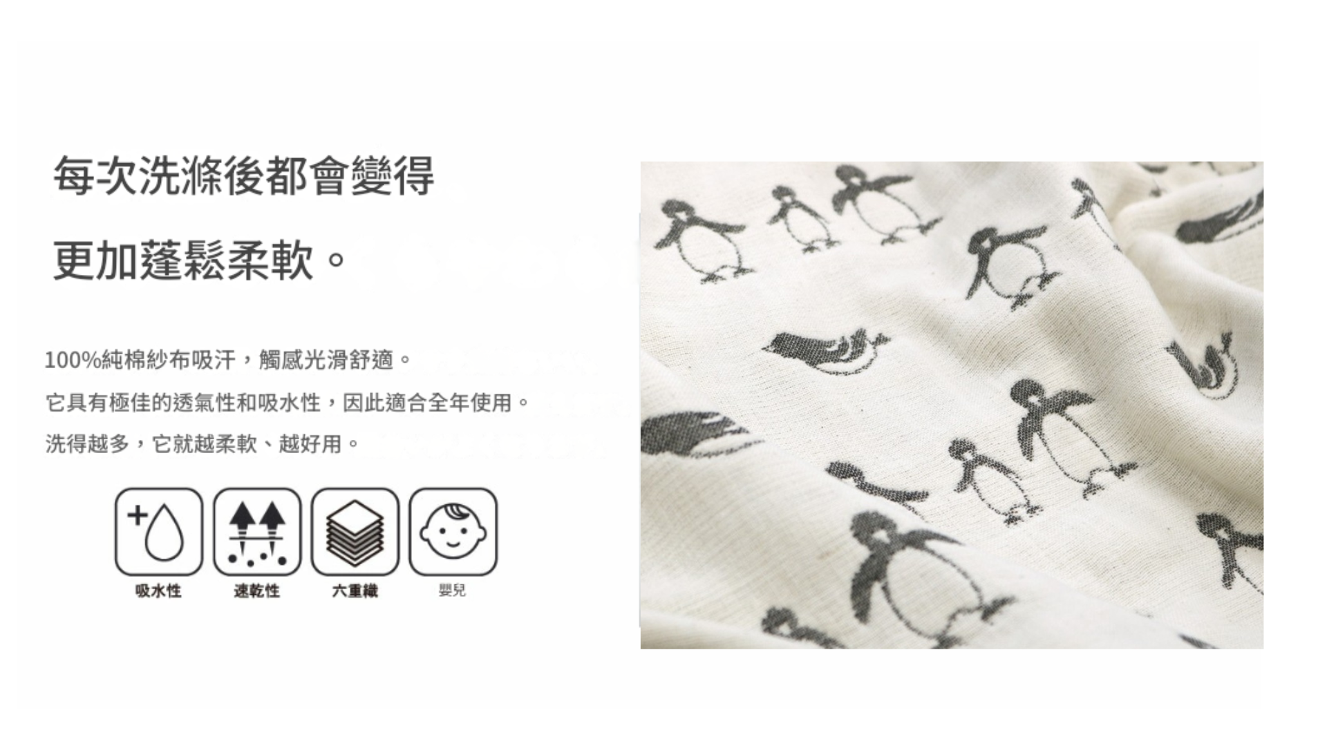 它採用六層純棉紗布的精緻交織技術,確保了極高的吸水力與透氣性,讓您每次使用後,都能感受到乾爽與愉悅。這款毛巾觸感柔軟,讓肌膚倍感親切,無論是沐浴後的輕擦,或是在洗手間的使用,都能帶來恰如其分的呵護。