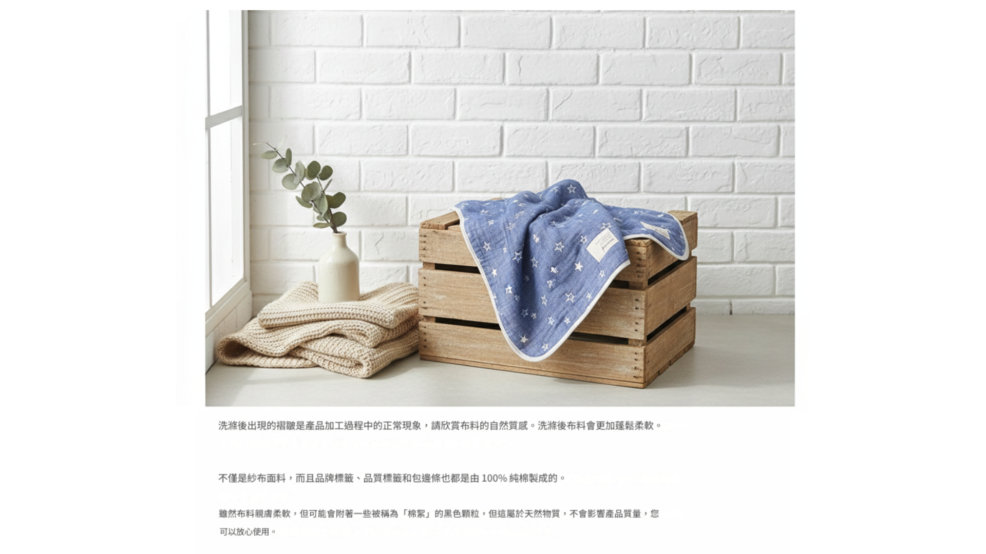•每件商品皆為天然棉織,使用後柔軟度會隨時間提升。