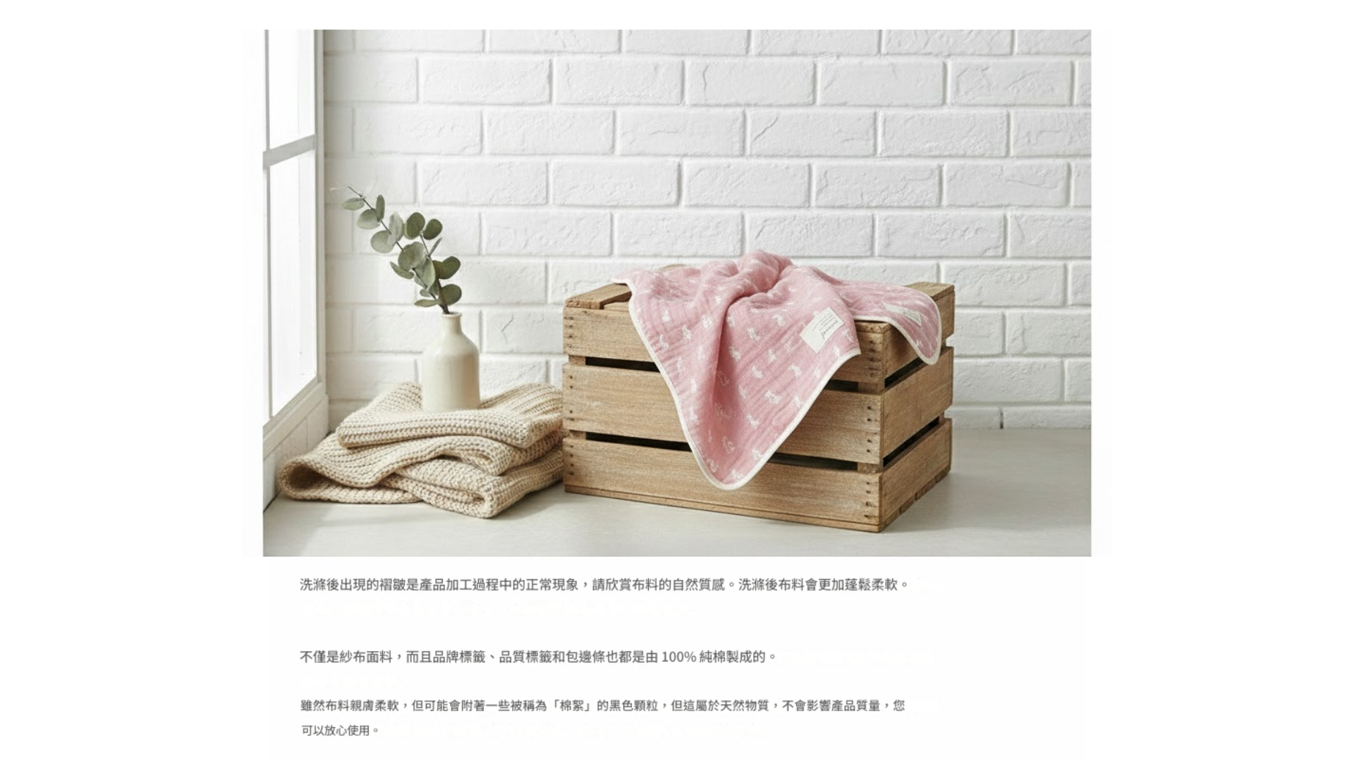 ✨ 商品特色•尺寸剛好,寶寶蓋毯、推車毯或浴巾都適合•六層紗布透氣柔軟,不悶熱•親膚純棉,呵護敏感肌•可當安撫巾、小睡毯、浴巾,實用百搭📏 商品資訊•尺寸:約 70 × 100 公分•材質:100% 純棉•產地:日本製(愛知縣)🎁 小提醒•每件商品皆為天然棉織,使用後柔軟度會隨時間提升。•建議使用中性洗劑,避免使用漂白劑或柔軟劑,以維持吸水性與透氣性。•可機洗&手洗,清洗後請自然晾乾,避免使用烘乾機,以防紗布縮水或變形。