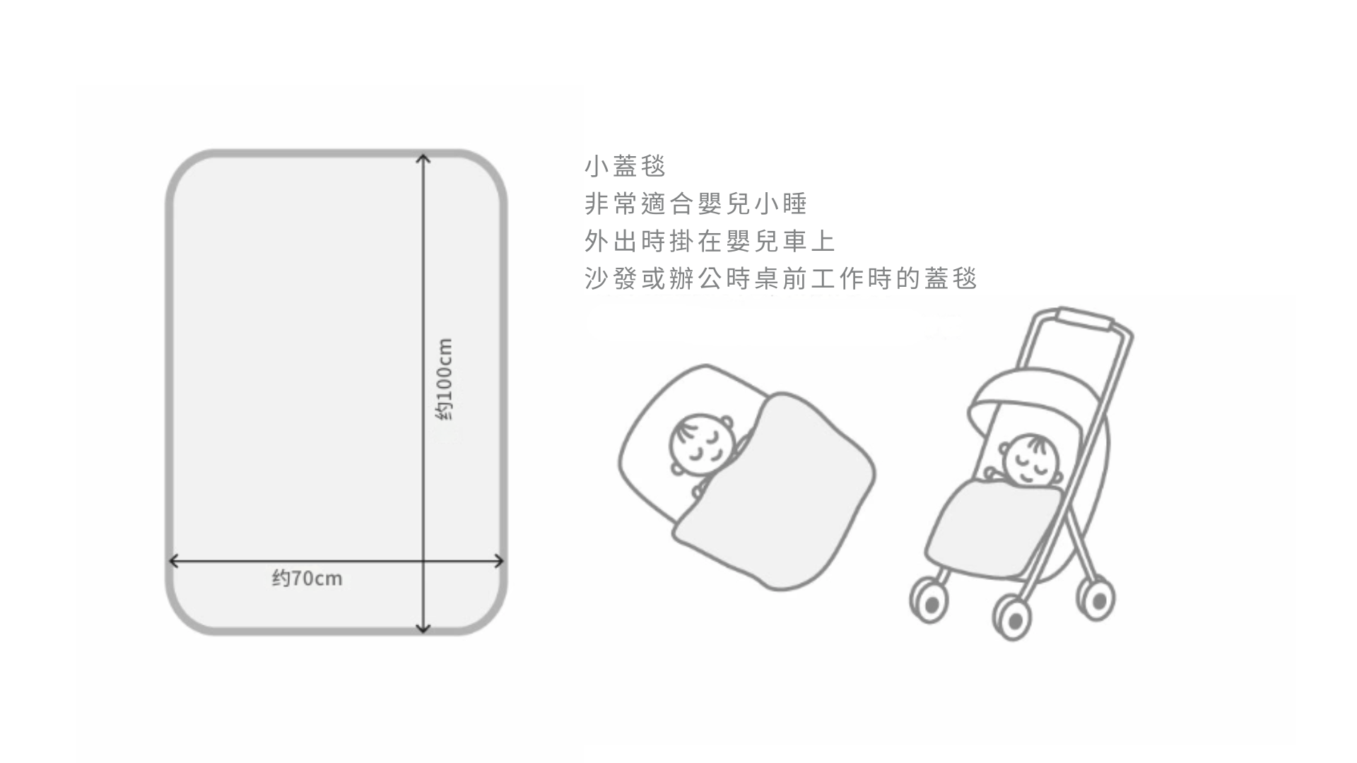 •尺寸剛好,寶寶蓋毯、推車毯或浴巾都適合