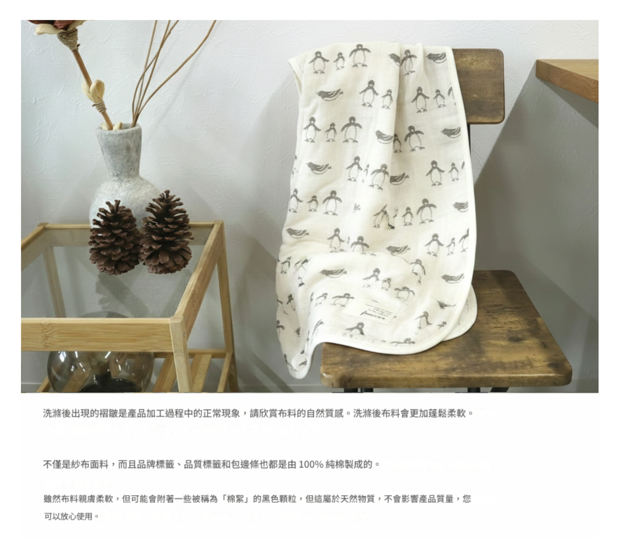 •可機洗&手洗,清洗後請自然晾乾,避免使用烘乾機,以防紗布縮水或變形。